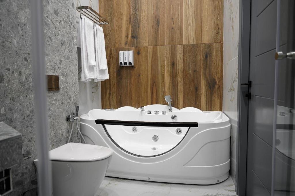 Comfortable Accommodations: Dynasty Hotel & SPA in Yerevan offers family rooms with air-conditioning, private bathrooms, and modern amenities. Each room includes a work desk, TV, and free WiFi, ensuring a pleasant stay. Wellness and Leisure: Guests can relax in the spa and wellness center, sauna, or indoor swimming pool. The fitness center and hot tub provide additional options for staying active and rejuvenated. Dining Experience: The family-friendly restaurant serves local, international, and European cuisines with brunch, lunch, dinner, high tea, and cocktails. Breakfast includes fresh pastries, pancakes, and local specialties. Prime Location: Located 7.5 mi from Zvartnots International Airport, the hotel is near attractions such as Armenian Opera and Ballet Theater (2.4 mi) and Yerevan Cascade (2.8 mi). Free on-site private parking is available.