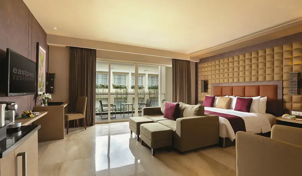 Eastparc Hotel Yogyakarta is a hotel designed to bring comfort and happiness to every moment of your stay. With its warm ambiance and family oriented concept, it is the perfect choice for guests looking for a stay filled with lasting memories. Each of our rooms features a private balcony, offering fresh air and a more open feel. A kids’ mattress is also included in every room free of charge, ensuring children can rest comfortably with their families. As part of our commitment to sustainability, we continue to reduce single-use plastics as a step toward caring for the environment. Hospitality for us means genuine warmth and attentive service, delivered wholeheartedly by our dedicated team to make every guest feel truly welcome. To make family moments more enjoyable, we provide a wide range of activities and children’s attractions. From play areas to family friendly programs, every detail is designed to create memories worth cherishing. Located only about 6 km from the lively Malioboro area, we offer a peaceful retreat while keeping you close to the heart of Yogyakarta. With thoughtfully designed facilities, green corners across the property, and heartfelt service, Eastparc Hotel Yogyakarta offers more than just a comfortable stay it creates meaningful experiences for every guest.