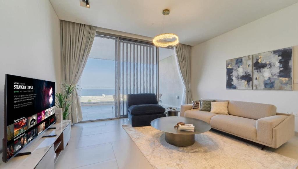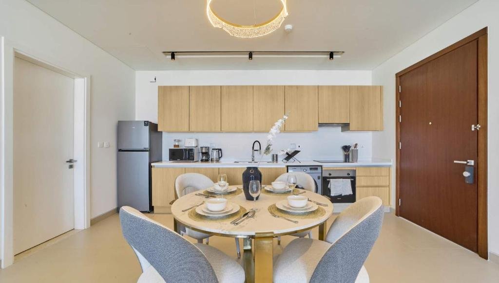 Beachfront Location: Elegant 1BR with Beach View in Al Zorah offers direct beachfront access in Ajman. Guests can relax on the sandy shores and enjoy stunning sea views. Facilities and Amenities: The apartment features a fitness centre, free WiFi, and a lift. Free on-site parking is available, along with air-conditioning, a washing machine, and a fully equipped kitchen. Spacious Accommodation: The spacious apartment includes one bedroom and one bathroom. Additional amenities include a patio, dining table, and a range of kitchen appliances. Nearby Attractions: Sharjah International Airport is 25 km away. Points of interest include Ajman China Mall (8 km), Sharjah Aquarium (26 km), and Dubai Mall (43 km).