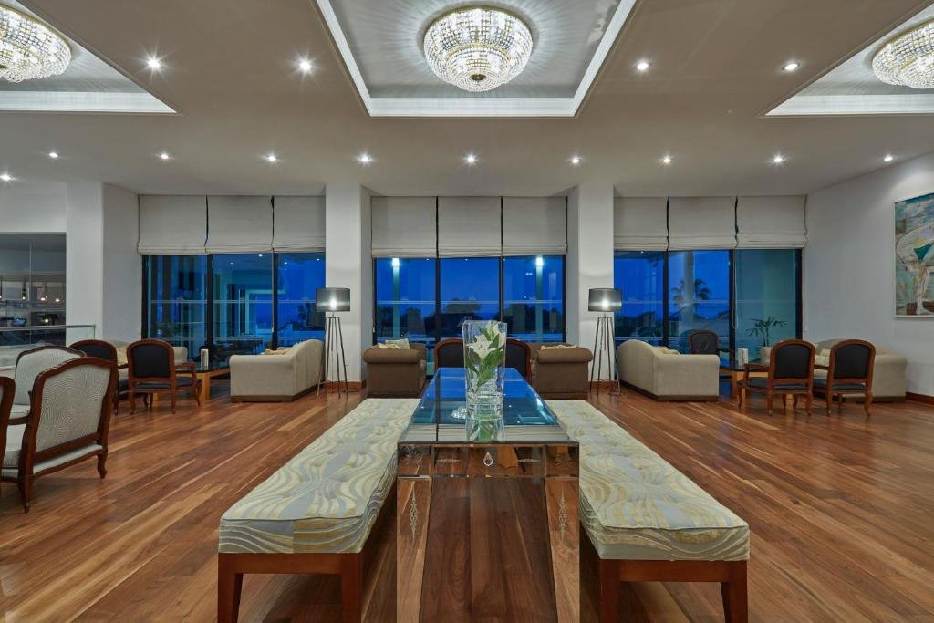 Situated on Ayia Napa’s sandy beachfront, Grecian Bay features indoor and outdoor pools, spa facilities, and 3 tennis courts. It offers panoramic sea views and air-conditioned rooms with private balconies. All guest rooms are equipped with satellite TV, telephone, minibar and hairdryer. Each has a work desk and en suite bathroom with bathrobe and slippers. Guests can use a free shuttle service to Cape Greco National Park, 5 km from the hotel. The small picturesque harbour of Ayia Napa is only 10 minutes’ walk away. Grecian Bay Spa Centre offers specialised massage treatments and aerobic sessions. Guests can also relax in the hot tub and benefit from the hair salon. Right on the beach, the open air Fisherman’s Hut Tavern offers fresh fish dishes with a view to the Mediterranean Sea. Guests can also enjoy international cuisine at the elegant Esperia Restaurant. Free Wi-Fi in public areas and on-site parking are available.