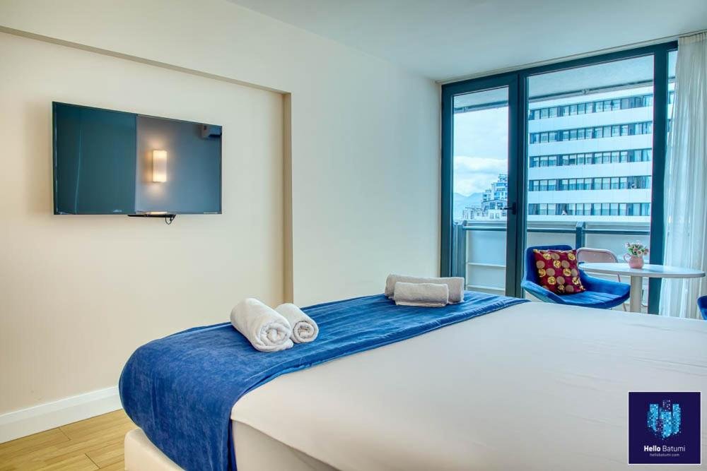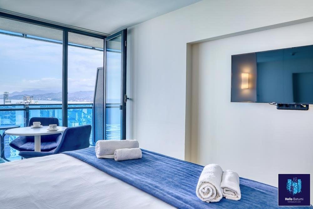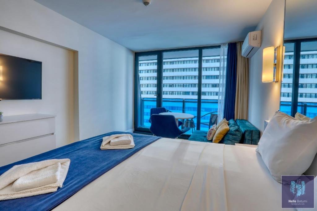 Beachfront Location: HelloBatumi in Batumi offers direct beachfront access with stunning sea views. Guests can relax on the terrace or balcony and enjoy the sunshine. Comfortable Accommodations: The aparthotel features family rooms with air-conditioning, kitchenettes, and private bathrooms. Each unit includes a balcony or patio, ensuring a pleasant stay. Convenient Facilities: Guests benefit from free WiFi, a lift, 24-hour front desk, and full-day security. Additional amenities include bicycle parking, washing machine, and an outdoor dining area. Nearby Attractions: Batumi Beach is a 5-minute walk away, Aquapark Batumi less than 1 km, and Batumi Archeological Museum 2 km from the property. Batumi International Airport is 5 km distant.