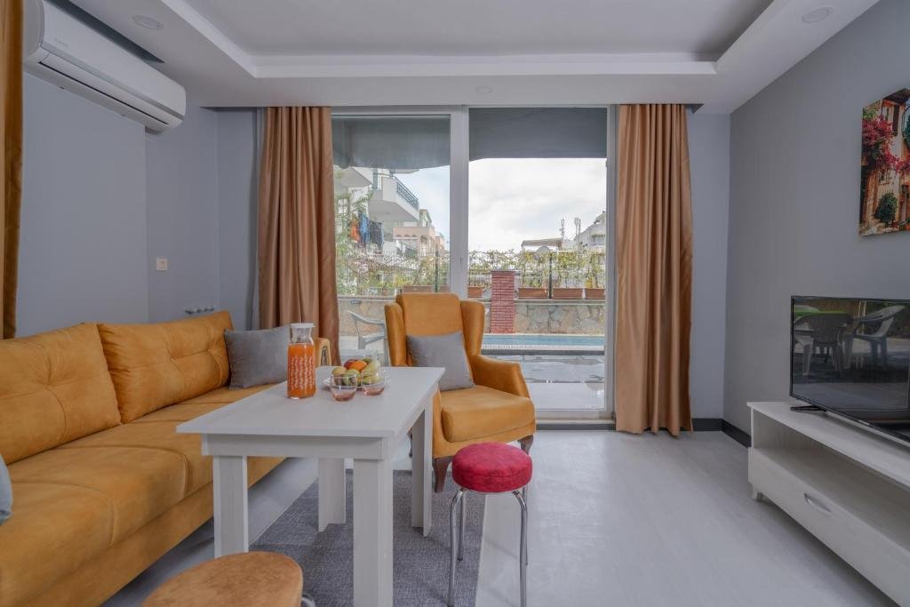 Prime Location: Home Mood Apart Hotel in Antalya offers a convenient location, situated 5 km from Antalya Airport. Nearby attractions include Blanche Beach (2.5 km) and Antalya Museum (12 km). Exceptional Facilities: Guests enjoy a private beach area, sun terrace, garden, seasonal outdoor swimming pool, and free WiFi. Additional amenities include a private check-in and check-out service, paid shuttle, concierge, and tour desk. Comfortable Accommodations: Recently renovated apartments feature air-conditioning, balcony, terrace, and private bathroom. Each unit includes a kitchen, washing machine, and dining area, ensuring a pleasant stay. Guest Satisfaction: Highly rated by guests for its friendly host, beach access, and convenient location. Activities such as cycling and bicycle parking are available.