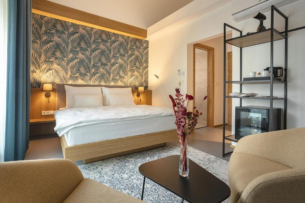 Comfortable Accommodations: Hotel Bronzo Brno in Brno offers family rooms with air-conditioning, private bathrooms, and modern amenities. Each room includes a minibar, TV, and free WiFi. Dining Experience: The modern restaurant serves European cuisine with vegetarian options. Guests can enjoy breakfast in the room or dine at the bar. Leisure Facilities: The hotel features a sun terrace, coffee shop, and a bar. Additional services include private check-in and check-out, a lift, and a tour desk. Prime Location: Located 10 km from Brno–Turany Airport, the hotel is a short walk from Trade Fairs Brno and close to Špilberk Castle and St. Peter and Paul Cathedral.