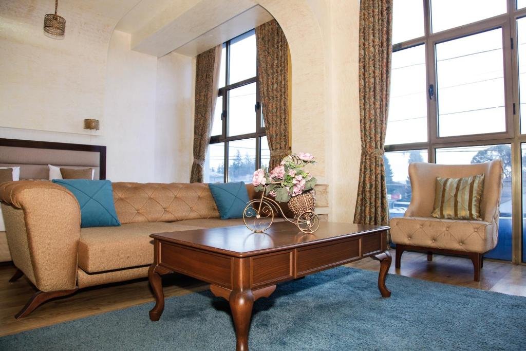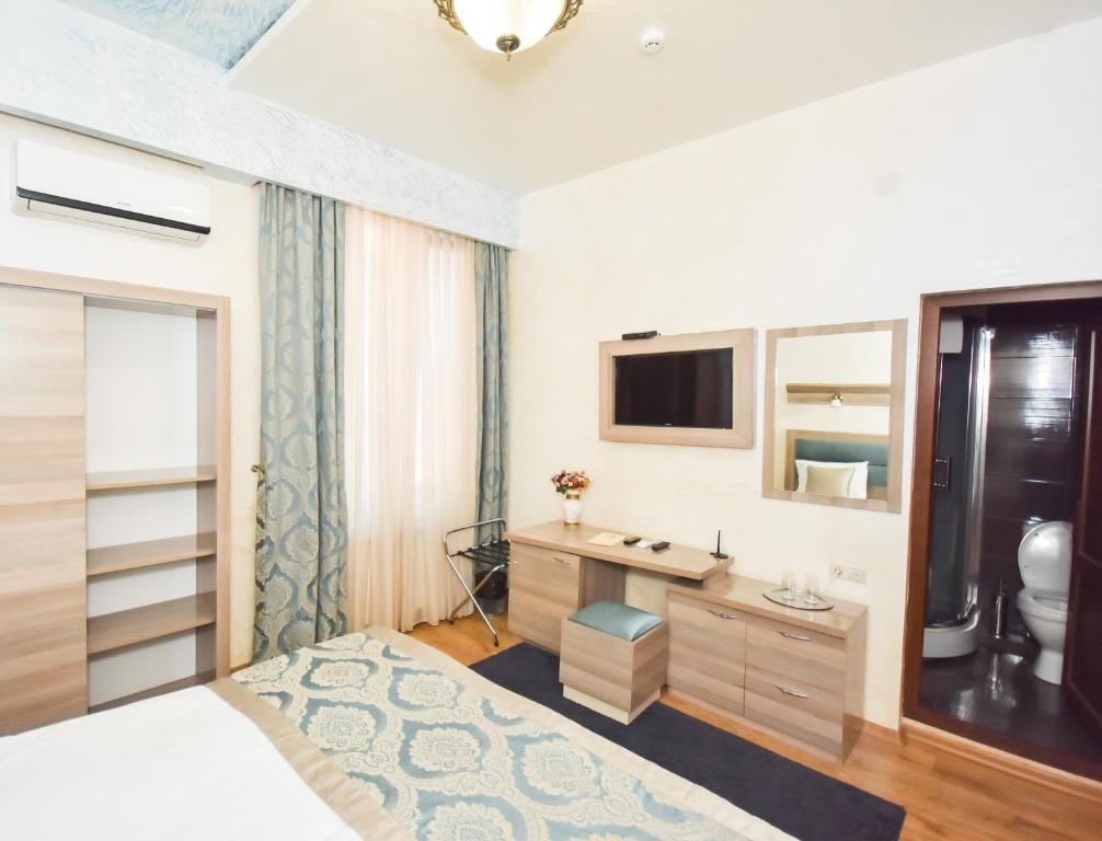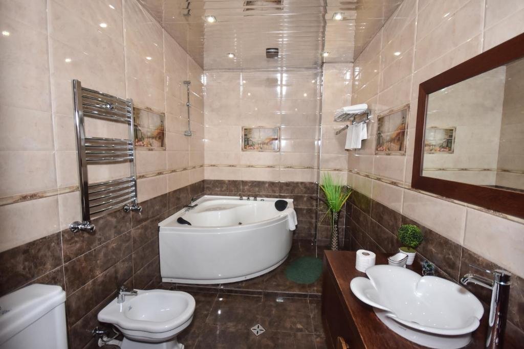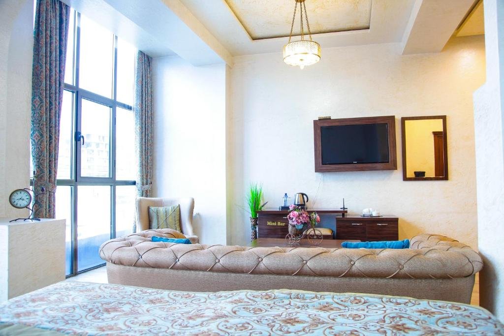Comfortable Accommodations: Rooms feature air-conditioning, private bathrooms, city views, and modern amenities such as free WiFi, mini-bars, and soundproofing. Dining and Leisure: The hotel offers a terrace, restaurant, bar, and a variety of leisure facilities including a hot tub, balcony, and outdoor dining area. Convenient Services: Guests benefit from private check-in and check-out, a 24-hour front desk, concierge service, and free on-site parking. Location and Attractions: Located in Zugdidi, the hotel is 52 mi from Kutaisi International Airport and near attractions like the Zugdidi Fortress.