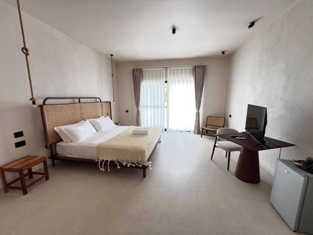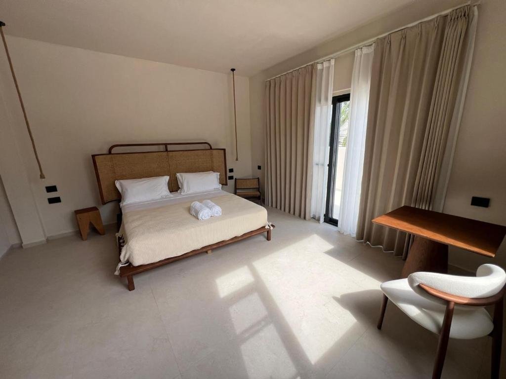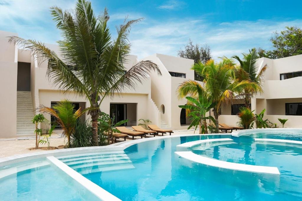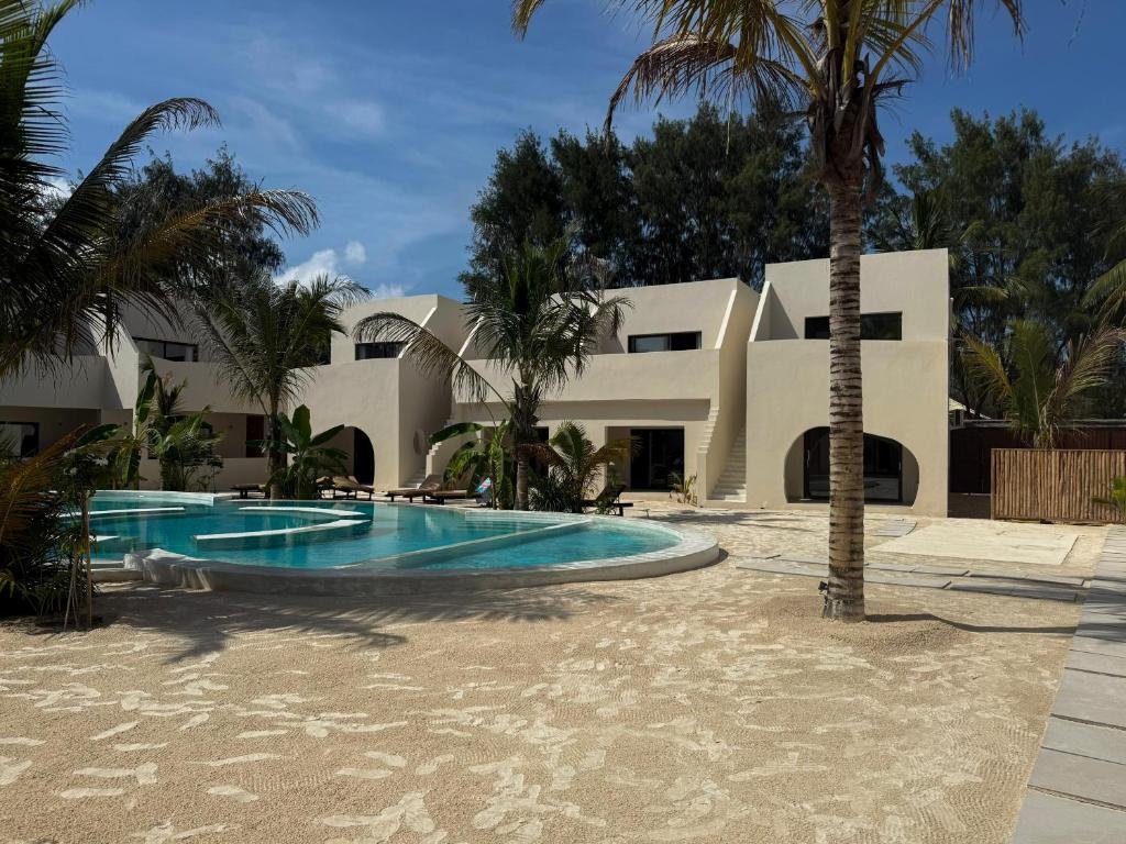 Prime Location: Kano Boutique Hotel Paje in Paje offers a private beach area, infinity swimming pool, sun terrace, and lush garden. Guests enjoy free WiFi throughout the property. Comfortable Accommodations: Rooms feature air-conditioning, balconies with garden or pool views, private bathrooms, and modern amenities such as mini-bars and flat-screen TVs. Family rooms and terraces are available. Dining Experience: The hotel serves African, Italian, Mediterranean, Middle Eastern, local, and international cuisines. An à la carte breakfast is available, and vegetarian options are provided. Leisure Activities: Guests can relax by the pool, enjoy evening entertainment, and participate in cycling activities. Free on-site private parking and a tour desk enhance the stay.
