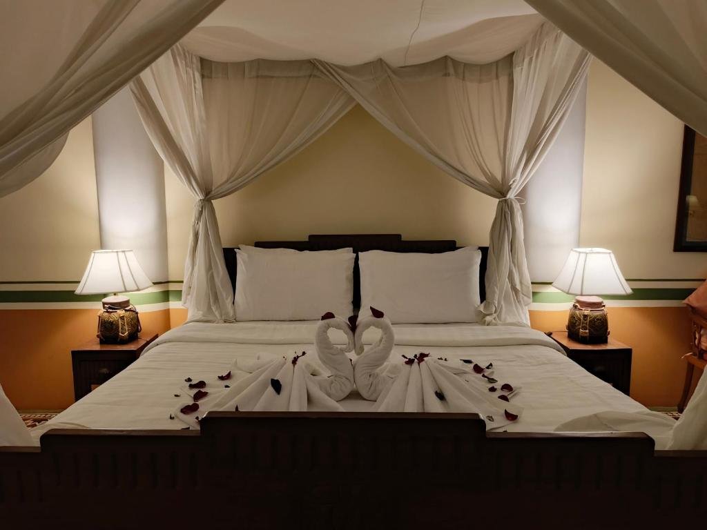 Comfortable Accommodations: La Villa in Battambang offers 4-star comfort with air-conditioned rooms featuring private bathrooms, minibars, and free WiFi. Each room includes a work desk, TV, and modern amenities for a pleasant stay. Exceptional Facilities: Guests can enjoy a saltwater swimming pool, sun terrace, and lush garden. The hotel provides a fitness centre, wellness packages, and an indoor play area. Additional facilities include a coffee shop, outdoor seating, and free toiletries. Dining Experience: The family-friendly restaurant serves French, international, and Cambodian cuisines with vegetarian options. Breakfast includes continental, à la carte, and Asian selections, featuring juice, pancakes, and fruits. Prime Location: Located 500 metres from Battambang Museum and 4-minute walk to Colonial Buildings, La Villa is near attractions such as Wat Po Veal and Battambang Royal Railway Station. Guests appreciate the friendly staff and excellent service.