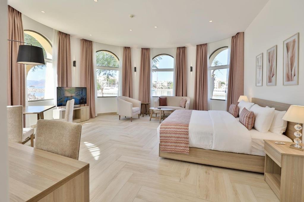 Prime Beachfront Location: Lavanda Boutique Suites Tala Bay in Aqaba offers a private beach area, beachfront, and a lush garden. Guests enjoy a terrace and a modern restaurant serving international cuisine. Comfortable Accommodations: Rooms feature air-conditioning, private bathrooms, sea views, balconies, and amenities such as minibars and free WiFi. Additional facilities include a year-round outdoor swimming pool, fitness centre, and free on-site parking. Dining Experience: The restaurant serves lunch and dinner with halal options. Breakfast includes continental, à la carte, full English/Irish, vegetarian, and halal selections. Exceptional Service: Highly rated for its attentive staff, room cleanliness, and restaurant, the hotel provides private check-in and check-out, a 24-hour front desk, concierge service, and daily housekeeping.