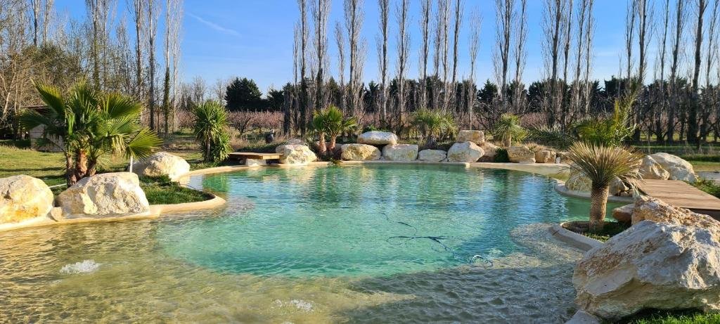 Comfortable Accommodations: Le Mas des Cerisiers in Avignon offers family rooms with private bathrooms, air-conditioning, and garden or pool views. Each room includes a TV, soundproofing, and free WiFi. Exceptional Facilities: Guests enjoy an infinity swimming pool, sauna, sun terrace, and hot tub. Additional amenities include a lounge, wellness packages, and free on-site private parking. Dining Experience: The family-friendly restaurant serves French cuisine with a traditional ambience. Breakfast includes continental and buffet options with fresh pastries, cheese, fruits, and juice. Local Attractions: Located 8 km from the Papal Palace and Pont d'Avignon, the property is near attractions such as Avignon Central Station (9 km) and Pont du Gard (31 km). Boating is available in the surroundings.