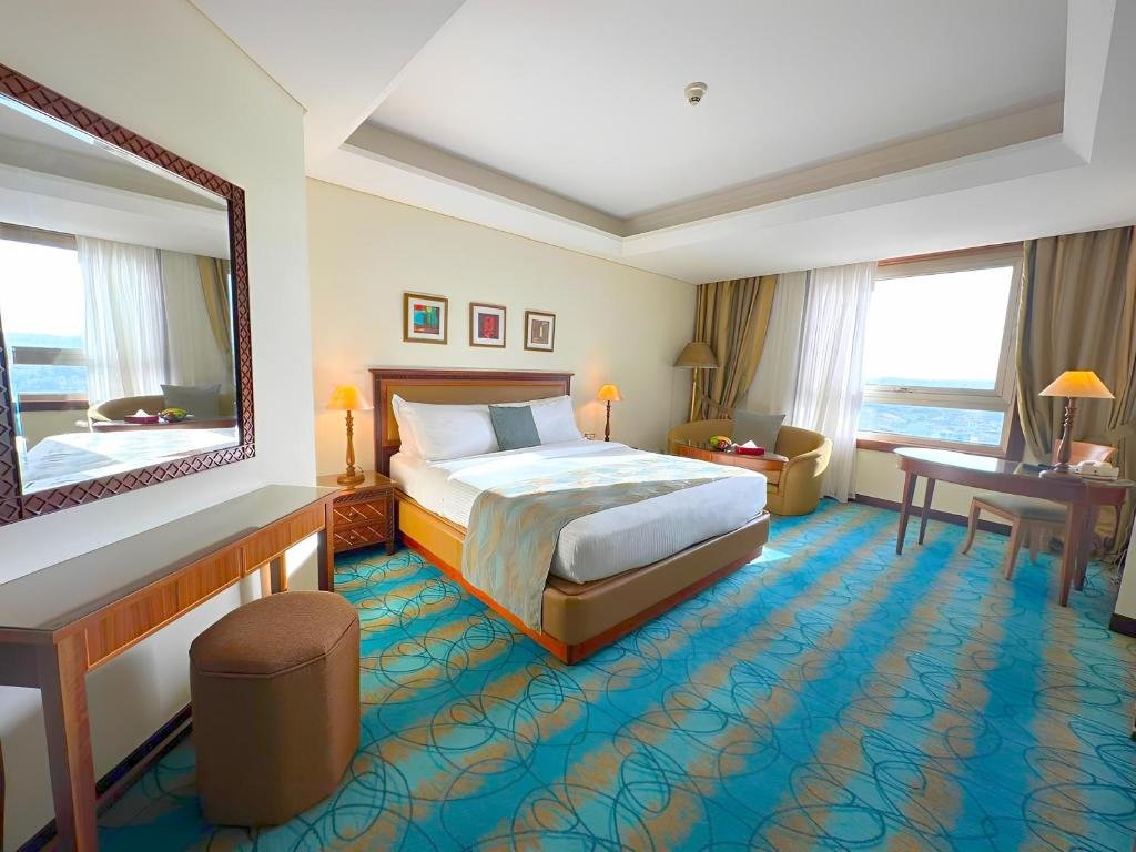 Towering over Amman, Le Royal is home to a luxurious 3-floor shopping mall. Panoramic fitness rooms, a mudroom and a hairdresser are available at the spa. All elegant rooms at Le Royal Amman offer extra-large panoramic windows with views of the city. Interactive TV and high-speed internet are available and guests are welcomed with a complimentary soft drink. Luxury indoor and outdoor pools, a hot tub, and sauna provide you with relaxation, while the aerobics studio is perfect for a good work-out. Guests can choose among 6 international restaurants and bars. Sushi, Italian fare and fine pastries are on offer. A Friday brunch with jazz music, exotic cocktails at the Samurai and a panoramic smoking lounge are some of the entertainment options. Located in the 3rd Circle, Le Royal is about 5 km from Marka International Airport. Free parking is also available on site.