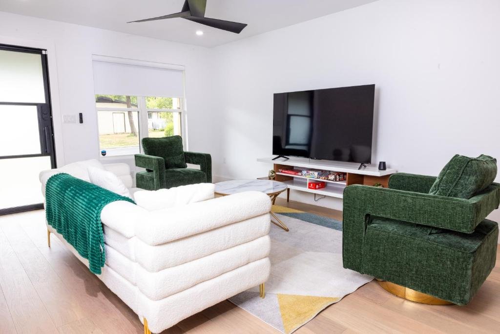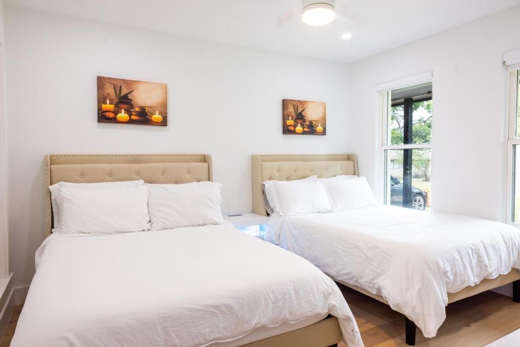 Spacious and Modern: Luxe Retreat in Austin offers a spacious, recently renovated holiday home with two bedrooms and a bathroom. The property features parquet floors, a fully equipped kitchen, and a private backyard oasis. Outdoor Amenities: Guests can enjoy a garden, outdoor play area, and seating areas. The property includes barbecue facilities, ensuring relaxing outdoor experiences. Convenient Location: Located 13 km from Austin-Bergstrom International Airport, the holiday home is near attractions such as Moody Center and Lyndon Baines Johnson Museum, each 6 km away. Free on-site private parking is available. Highly Rated by Guests: Luxe Retreat receives high ratings for its spaciousness, modern amenities, and private backyard oasis.