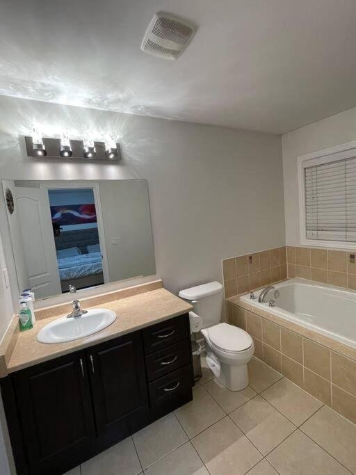 Spacious Accommodation: Luxury 4-Bedrooms Home in Brampton offers a spacious apartment with four bedrooms and two bathrooms. The living room features a comfortable sofa and a dining area, ideal for relaxation and entertainment. Modern Amenities: Guests enjoy free WiFi, air-conditioning, and a fully equipped kitchen with a dishwasher, microwave, and oven. Additional amenities include a washing machine, balcony, patio, and a work desk. Outdoor Spaces: A beautiful garden provides a tranquil setting, while a private patio offers a perfect spot for outdoor relaxation. Convenient Location: Located 14 km from Toronto Pearson International Airport, the apartment is close to attractions such as Vaughan Mills Shopping Centre (13 km) and Canada's Wonderland (15 km).