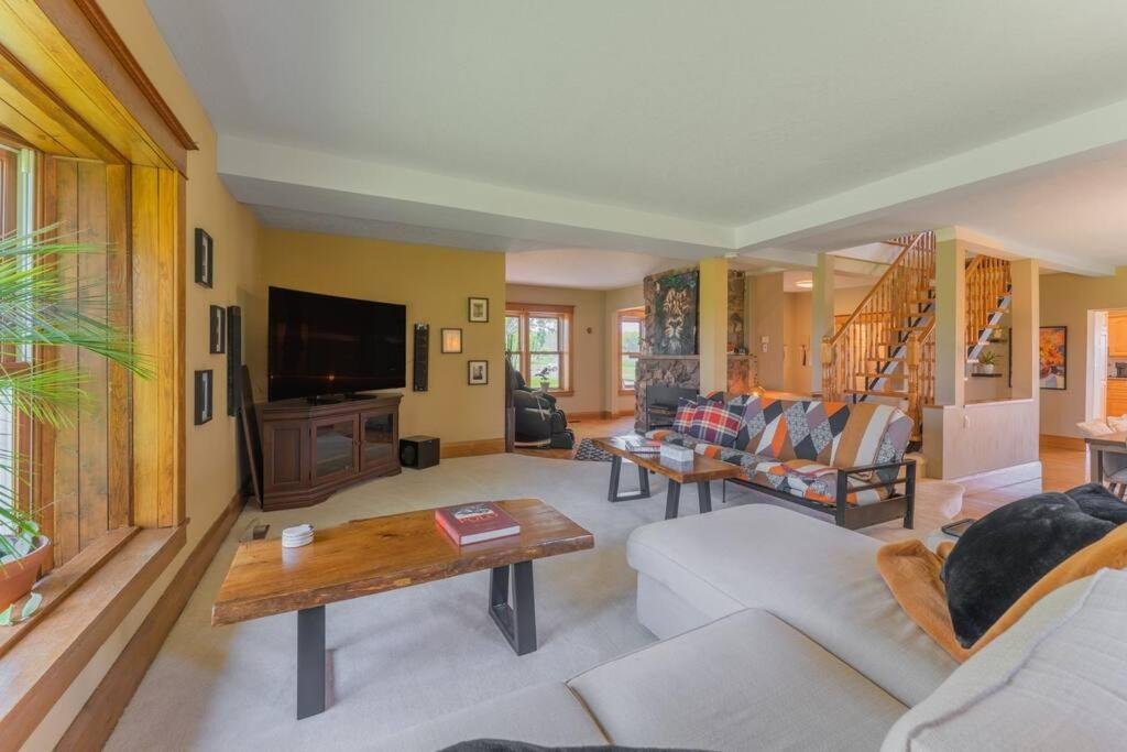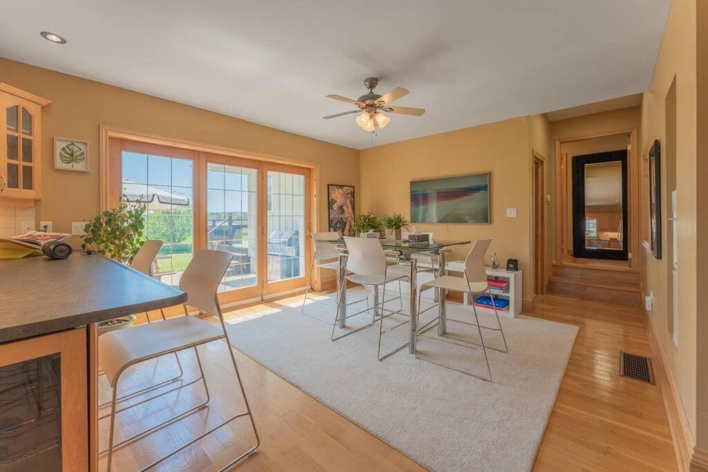 Spacious Accommodation: Luxury Hillside Farmhouse on The Bay of Quinte in Belleville offers a spacious holiday home with five bedrooms and four bathrooms. The property features a living room, family rooms, and a fully equipped kitchen. Outdoor Amenities: Guests can enjoy a fitness centre, sun terrace, and a beautifully maintained garden. An outdoor fireplace, seating area, and picnic spots enhance the outdoor experience. Free WiFi is available throughout the property. Local Attractions: Located 22 km from the National Air Force Museum and 7 km from The Empire Theatre, the holiday home provides easy access to local attractions. Other nearby points of interest include Empire Theatre (23 km) and Sandbanks Provincial Park (46 km).