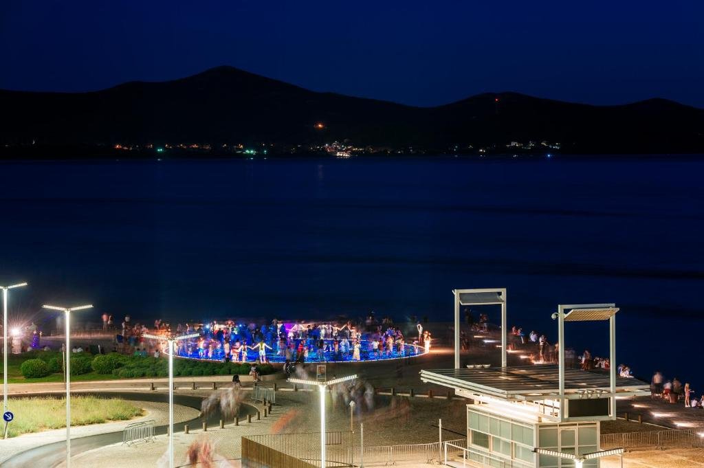 Spacious Accommodations: Luxury Residence Zadar in Zadar offers a spacious 5-star apartment with two bedrooms and two bathrooms. The living room features a sofa and a dining area, ensuring comfort for all guests. Modern Amenities: Guests enjoy free WiFi, air-conditioning, and a terrace with sea views. Additional facilities include a hot tub, balcony, and a fully equipped kitchen with a dishwasher and coffee machine. Prime Location: Located in the city center, the apartment is 8.7 mi from Zadar Airport. Nearby attractions include Maestrala Beach (11-minute walk), Greeting to the Sun (984 feet), and The Sea Organ (1312 feet). Boating is available in the surroundings. Guest Satisfaction: Highly rated for its location with a view, convenient location, and room comfort, Luxury Residence Zadar provides a memorable stay in Zadar.
