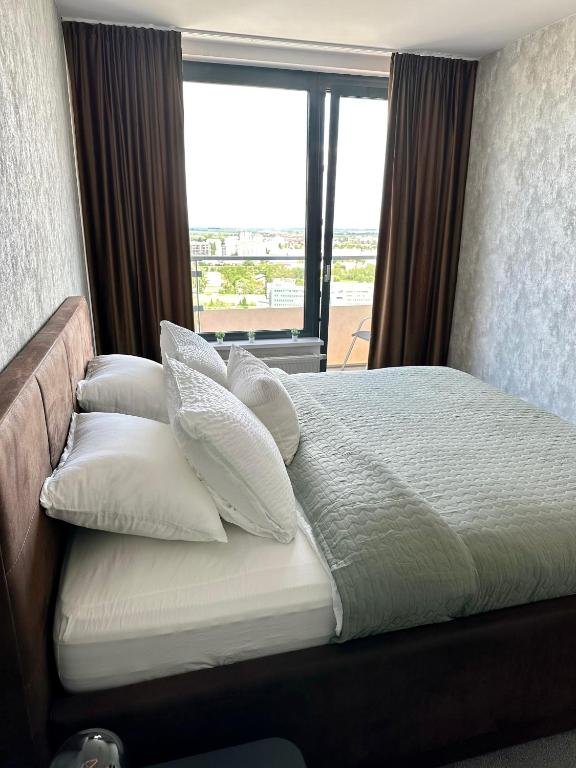 Modern Comforts: Luxusný apartmán na 21 poschodí s parkovaním zadarmo BA in Bratislava offers a modern restaurant, free WiFi, lift, minimarket, outdoor play area, and coffee shop. Guests enjoy air-conditioning, balcony with city views, streaming services, washing machine, and a fully equipped kitchen. Dining Experience: The restaurant serves brunch, lunch, dinner, high tea, and cocktails in a contemporary ambience. Additional amenities include a work desk, sofa bed, and free toiletries. Prime Location: Located 8 km from Bratislava Airport and 1.8 km from Ondrej Nepela Arena, the apartment is near attractions such as St. Michael's Gate (3.5 km) and Bratislava Castle (4.7 km). Guests appreciate the scenic views, room cleanliness, and convenient location.