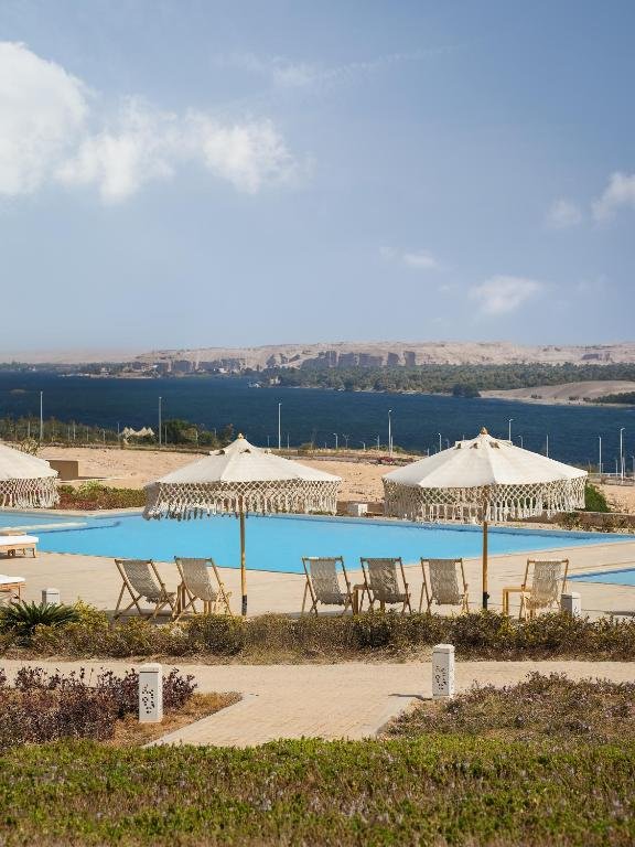 Elegant Accommodation: MGM Wellness Retreat in Aswan offers luxurious rooms with garden or river views. Each room features air-conditioning, a private bathroom, and modern amenities. Exceptional Facilities: Guests can enjoy spa facilities, a swimming pool with a view, sun terrace, and lush gardens. Additional amenities include a fitness room, yoga classes, and a kids' club. Dining Experience: The family-friendly restaurant serves a variety of cuisines, including continental, Italian, and vegetarian options. Live music and outdoor seating enhance the dining experience. Prime Location: Located 31 km from Aswan International Airport, the resort is near attractions such as the Aga Khan Mausoleum (16 km) and the Nubian Museum (17 km).