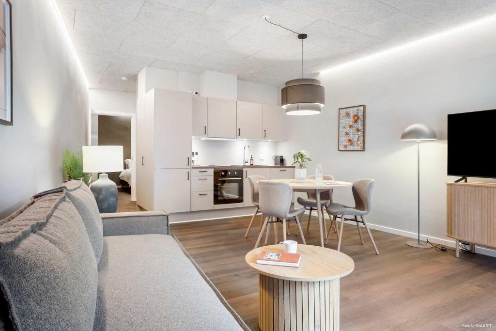Comfortable Living Space: Midtown Nest in Aarhus offers a one-bedroom apartment with a living room. The property includes a fully equipped kitchen, washing machine, and free WiFi. Modern Amenities: Guests can enjoy a patio with city views, dining table, work desk, and free toiletries. Additional amenities include a refrigerator, oven, stovetop, TV, and wardrobe. Prime Location: Located 38 km from Aarhus Airport, the apartment is a short walk from Steno Museum (12 minutes), ARoS Aarhus Art Museum (700 metres), and Aarhus Art Building (400 metres). Nearby attractions include Aarhus Cathedral and Aarhus City Hall.