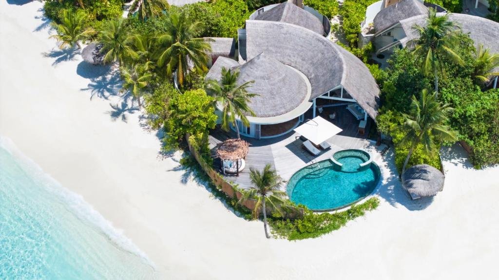 Milaidhoo Maldives is a boutique luxury resort in the UNESCO biosphere reserve, close to Hanifaru Bay. Its own coral reef is a protected area and noted as an outstanding snorkelling and diving site. The beautiful island, abundant with tropical greenery, is fringed by white soft deep sandy beaches and circled by a coral reef. Offering barefoot informality, each of the spacious air-conditioned villas has its own private freshwater pool on the sundeck and opens up 180 degrees to allow the natural beauty of the island into the villa. All villas have ocean views. Custom-made furnishings and thoughtful designs are Maldivian inspired. An island host is on hand to ensure every detail of the stay is perfect, from arranging spa appointments and excursions to ensuring the private wine fridge in the villa is stocked with the guest's personal favourites. There are three restaurants and two bars designed to appeal to the senses. The Milaidhoo Gourmet plan is a dine-around meal plan offering daily breakfast, lunch and dinner as well as international and premium brands of spirits, beers, wines and cocktails from our selection. Guests can enjoy a 24-hour island host, personalized welcome gift, champagne bottle and use of private airport lounge on arrival and departure. The over-water spa has four treatment suites and complimentary yoga and meditation classes take place in the open air over-water pavillion. Sports activities include sailing, catamarans, kayaks, a 24-hour fitness centre and yacht trips. The property also provides dolphin cruises, whale shark spotting, manta ray watching, conservation activities with the resident marine biologist, fishing, diving, snorkelling, and an open-air infinity pool. Milaidhoo is reached by a scenic 30-minute seaplane ride from Male International Airport. Airport transfers are provided by the hotel at an extra charge.