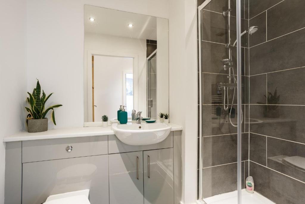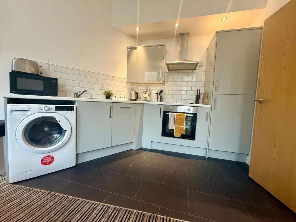 Comfortable Living Space: Modern City Centre Apartment in Bradford offers a one-bedroom apartment with a living room. The property includes a fully equipped kitchen, washing machine, and free WiFi. Convenient Facilities: Guests benefit from private check-in and check-out services, a lift, and paid off-site parking. The apartment features streaming services, a dining table, and a seating area. Prime Location: Located 12 km from Leeds Bradford International Airport, the apartment is near attractions such as Victoria Theatre (14 km) and Leeds Town Hall (15 km).
