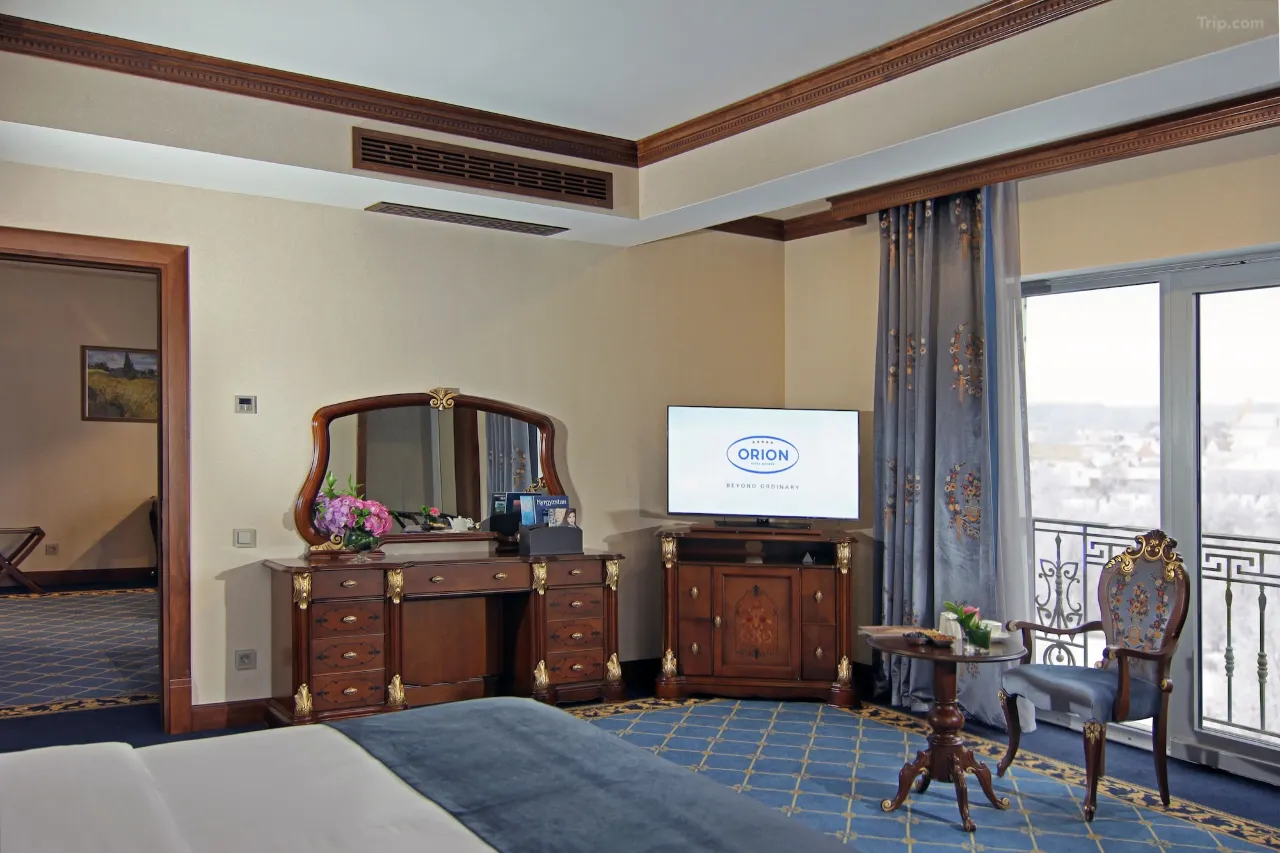The Hotel Orion Bishkek is the newest addition to Bishkek and strives to become the most luxurious haven of comfort quality service and fine cuisine Perfectly located in the business district surrounded by a beautiful park and greenery the Hotel Orion Bishkek features 84 luxurious rooms and Suites a bar and terrace which will be the place to be An all-day Restaurant where European Chefs will meet every pallet and a fully equipped Elixir Spa and Fitness Centre including an indoor pool and Wellness area In addition a large ball room as well as meeting room and board room shall assure that any conference meeting or social gathering will be success and memorable experience This will make the Hotel Orion Bishkek the perfect destination for business and leisure travellers alike The hotel has been designed by Italian architects and only the finest materials have been used to complete this oasis of hospitality Italian and Spanish Marble Italian furniture Villeroy and Boch as well as Grohe bathroom fixtures Baga Chandeliers Italian Frette linen Rosenthal China and many other European luxury brands have been chosen to reflect its supreme level of luxury comfort and classic flair