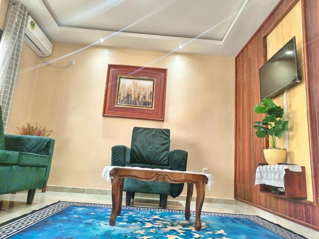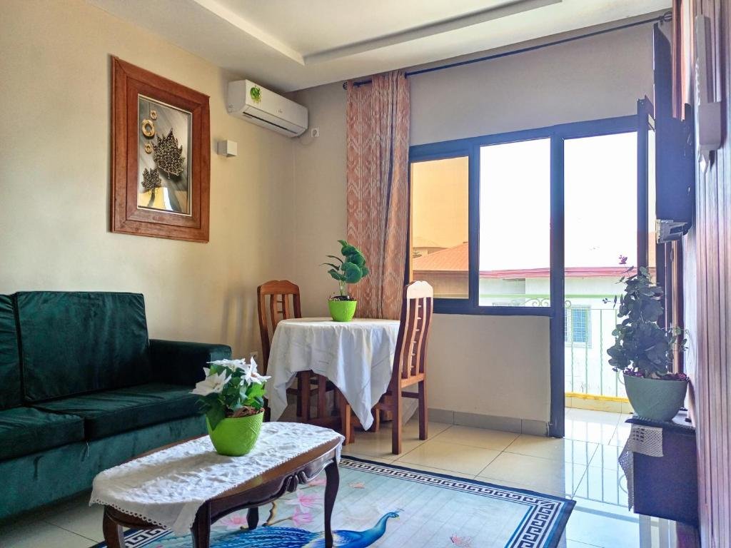 Elegant Accommodations: RÉSIDENCE DES 7 COLLINES in Yaoundé offers an adults-only apartment with a sun terrace, garden, and free WiFi. Guests enjoy garden and city views, ensuring a relaxing stay. Comfortable Amenities: The apartment features a patio, private bathroom, kitchen, and dining area. Additional amenities include air-conditioning, terrace, balcony, and free toiletries. Free on-site private parking is available. Convenient Location: Located 6.8 mi from Yaounde Central Station and 6.2 mi from Blackitude Museum and National Museum, the property is near attractions such as Mvog-Betsi Zoo and Ahmadou Ahidjo Stadium. An ice-skating rink is in the surroundings. Exceptional Service: Guests appreciate the concierge service, property staff, and room cleanliness. The 24-hour front desk, daily housekeeping, and full-day security provide added comfort.
