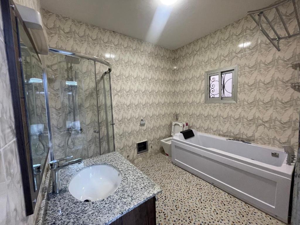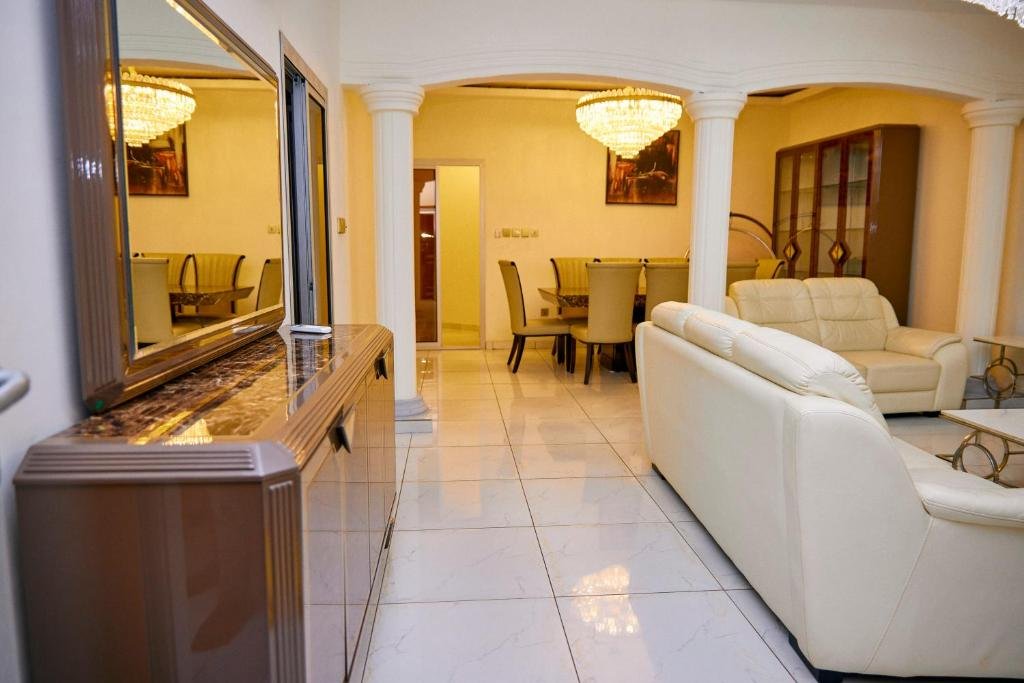 Comfortable Accommodations: RESIDENCE NOUMSI in Yaoundé offers a spacious apartment with a terrace and free WiFi. Guests enjoy air-conditioning, a fully equipped kitchenette, and a private bathroom. Convenient Facilities: The property features a hot tub, balcony, and streaming services. Additional amenities include a washing machine, dishwasher, and PS4. Free on-site private parking is available. Prime Location: Located 4.3 mi from Yaoundé Central Station and 2.9 mi from Ahmadou Ahidjo Stadium, the apartment is near attractions such as Blackitude Museum and Mvog-Betsi Zoo. Exceptional Service: Highly rated for room comfort and attentive staff, RESIDENCE NOUMSI provides private check-in and check-out, a 24-hour front desk, concierge service, and daily housekeeping.