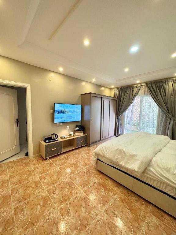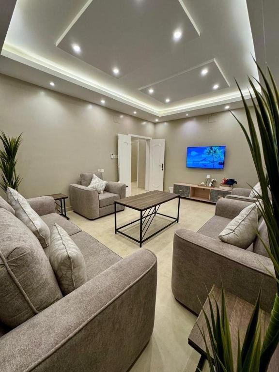 Spacious Accommodation: Rest house in Abha offers a spacious apartment with two bedrooms and two bathrooms. The living room includes a sofa and a dining table, providing ample space for relaxation and meals. Outdoor Amenities: Guests can enjoy a garden and terrace with garden views. The terrace features outdoor furniture and a patio, ideal for outdoor activities. Free WiFi is available throughout the property. Convenient Facilities: The apartment includes air-conditioning, a kitchenette, washing machine, and a dining area. Additional amenities include a tea and coffee maker, microwave, and free toiletries. Prime Location: Located 15 km from Abha Airport, the property is near Al Andalus Park (1.7 km) and Abu Khayal Garden Park (3.4 km). Other attractions include Al Salam Theme Park and Waterfall Park, each within 5 km.