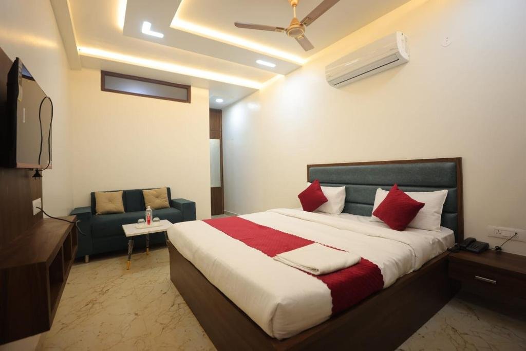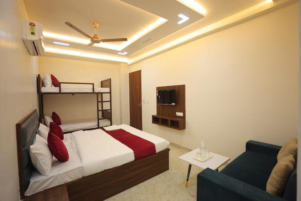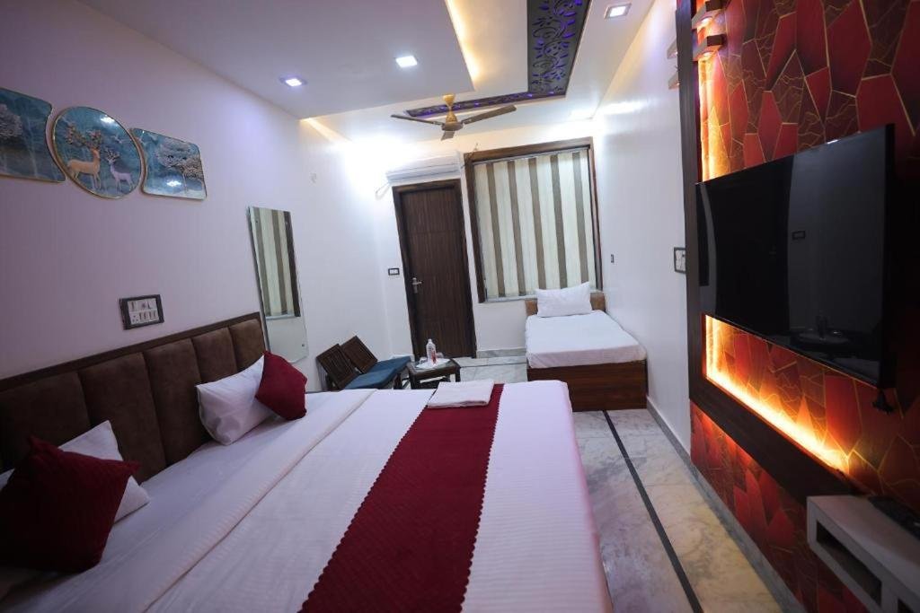 Comfortable Accommodations: Royal Taj Twin Palace in Agra offers family rooms with air-conditioning, balconies, and private bathrooms. Each room includes a dining area, wardrobe, and TV, ensuring a pleasant stay. Dining Experience: The family-friendly restaurant serves African and Indian cuisines with halal, kosher, vegetarian, vegan, and gluten-free options. Guests can enjoy brunch, lunch, and dinner in a welcoming ambience. Convenient Facilities: The homestay features a restaurant, free WiFi, outdoor fireplace, and outdoor seating area. Additional services include a 24-hour front desk, daily housekeeping, room service, and free on-site parking. Prime Location: Located 9 km from Agra airport, the property is a 19-minute walk from the Taj Mahal and close to TDI Mall (1.6 km). Nearby attractions include Agra Fort (4.6 km) and Tomb of Itimad-ud-Daulah (7 km). Highly rated by guests.