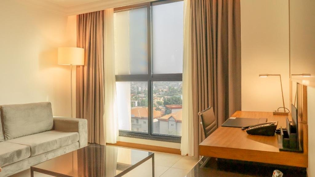 Comfortable Accommodations: STAR LAND HOTEL BASTOS in Yaoundé offers family rooms with air-conditioning, private bathrooms, and modern amenities. Each room includes a tea and coffee maker, mini-bar, and free WiFi. Exceptional Facilities: Guests can enjoy spa facilities, a fitness center, sun terrace, and a year-round outdoor swimming pool. Additional amenities include a steam room, sauna, and yoga classes. Dining Experience: The family-friendly restaurant serves African, British, French, and American cuisines, alongside local specialties. Breakfast options include American and buffet styles with fresh pastries and fruits. Prime Location: Located 2.2 mi from Yaoundé Central Station and 1.9 mi from the Multipurpose Sports Complex, the hotel is near attractions such as the Blackitude Museum and Mvog-Betsi Zoo.