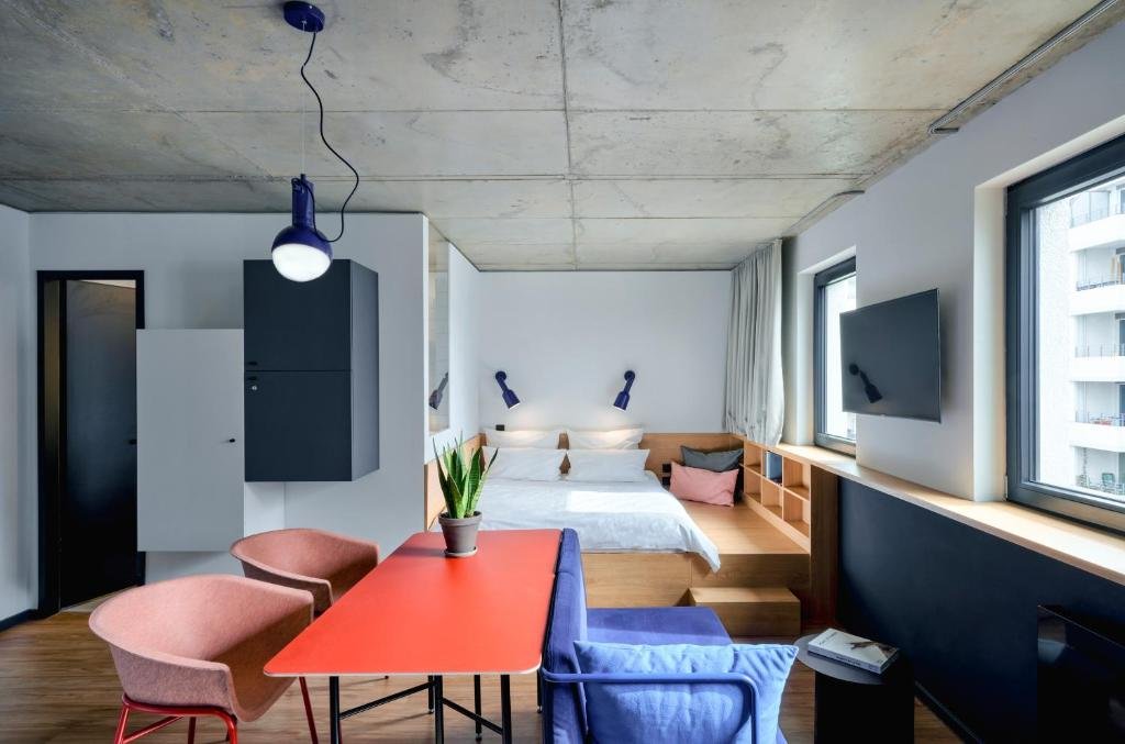Comfortable Accommodations: STAYERY Berlin Friedrichshain in Berlin offers aparthotel-style rooms with kitchenettes, private bathrooms, and city views. Each unit includes a dining area, work desk, and free WiFi. Exceptional Facilities: Guests can relax on the sun terrace or in the garden. The property features a lounge, games room, outdoor seating area, and bicycle parking. Additional amenities include air-conditioning, soundproofing, and paid off-site private parking. Prime Location: Located 23 km from Berlin Brandenburg Airport, the aparthotel is near attractions such as the East Side Gallery (2.4 km) and Alexanderplatz Underground Station (4.2 km). Highly rated for its convenient location, room comfort, and attentive staff.