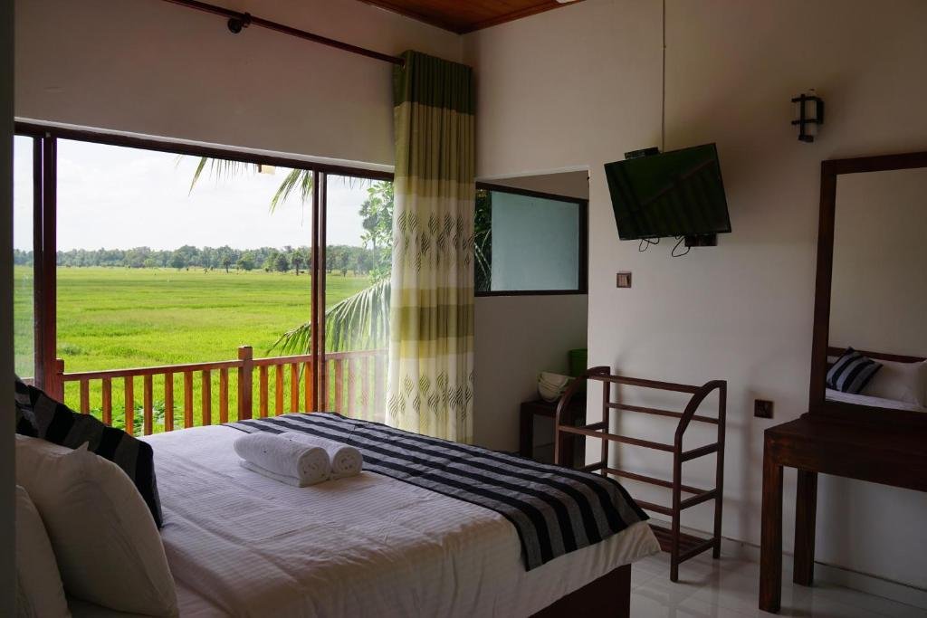 Comfortable Accommodations: Sunshine Tourist Rest in Anuradhapura offers air-conditioned rooms with private bathrooms, free WiFi, and garden views. Each room includes a work desk, TV, and soundproofing for a pleasant stay. Dining and Leisure: The family-friendly restaurant serves Asian cuisine in a welcoming atmosphere. Guests can relax in the lounge or outdoor seating area, enjoy the outdoor fireplace, and take advantage of the terrace and balcony. Convenient Location: Located 68 km from Sigiriya Airport, the guest house is near attractions such as Jaya Sri Maha Bodhi (4 km) and Kada Panaha Tank (6 km). Free on-site private parking is available, and the property is highly rated for its scenic location and attentive host.