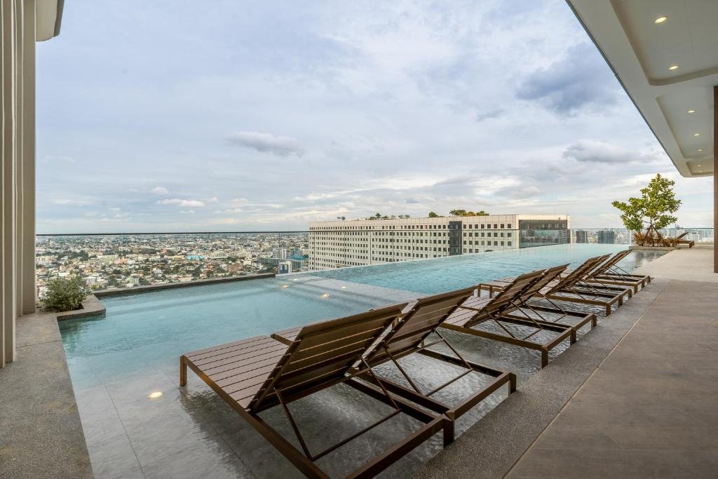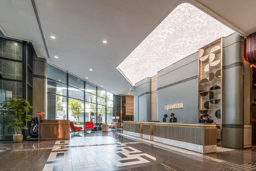 Elegant Accommodation: The Quarter Ratchayothin by UHG in Bangkok offers a 4-star hotel experience with a rooftop swimming pool, sun terrace, and free WiFi. Guests enjoy private bathrooms, city views, and modern amenities. Comfortable Facilities: The hotel features a steam room, fitness room, and a 24-hour front desk. Additional services include a paid airport shuttle, concierge, kids' club, and free on-site parking. Dining Options: Breakfast options include American, buffet, and Asian styles with local specialities, warm dishes, fresh pastries, and fruits. Room service and in-room breakfast are available. Prime Location: Located 14 km from Don Mueang International Airport, the hotel is a 17-minute walk from Central Plaza Ladprao. Nearby attractions include Chatuchak Weekend Market (4.8 km) and Siam Paragon Mall (10 km). Guests appreciate the scenic views and excellent service.
