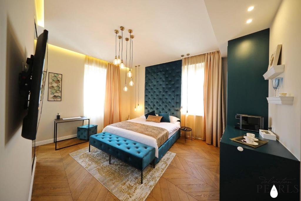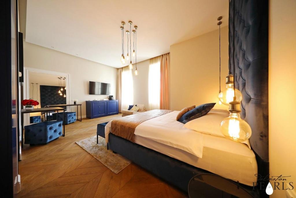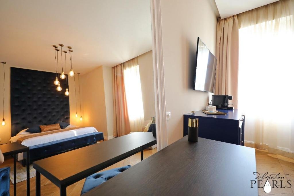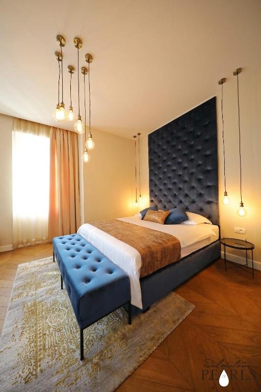 Comfortable Accommodations: Three Pearls Deluxe Rooms & Studios in Zadar offers 4-star apartments with free WiFi, air-conditioning, and private bathrooms. Each room includes a washing machine, tea and coffee maker, and a work desk. Modern Amenities: Guests can enjoy sea views, balconies, and city views from their rooms. Additional amenities include a kitchenette, microwave, dishwasher, and soundproofing. Free off-site parking is available. Prime Location: Located 8.7 mi from Zadar Airport, the property is near Maestrala Beach (less than 0.6 mi), the Palace of the Governor General (2-minute walk), and Zadar People's Square (2297 feet). Boating is available in the surroundings. Guest Satisfaction: Highly rated for its convenient location, room cleanliness, and comfort, the apartment ensures a pleasant stay for all visitors.