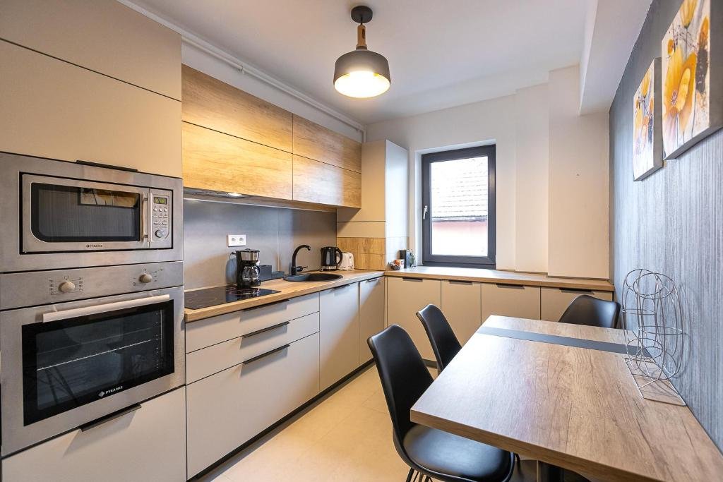 Comfortable Accommodation: Warm Amber Suites Brașov in Brașov offers a terrace and free WiFi. The apartment features a balcony, private bathroom, and a fully equipped kitchen. Modern Amenities: Guests benefit from a lift, family rooms, full-day security, bicycle parking, and luggage storage. Free on-site private parking is available. Prime Location: Located 144 km from Sibiu International Airport, the property is near Council Square (1.7 km) and Strada Sforii (2 km). Attractions such as The Black Tower and Bran Castle are within 31 km. Guest Satisfaction: Highly rated for its convenient and central location, guests appreciate the room cleanliness and excellent service.