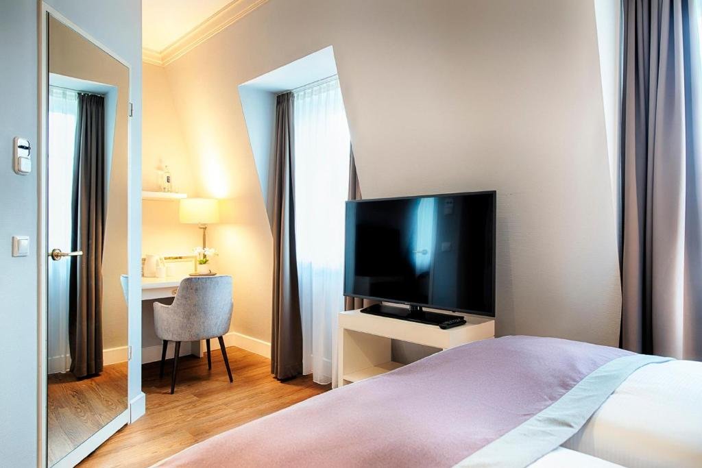 The spacious rooms of the Welcome Hotel Residenzschloss Bamberg are around 18-25 m² in size and come well-equipped with a flat-screen TV. Look forward to a rich and varied breakfast buffet each morning in the Orangerie restaurant, which also serves light cuisine throughout the afternoon. Enjoy cakes and aromatic coffee in the Residenzschloss's café or outside on the terrace. The stylish Fürstbischof von Erthal restaurant can spoil you with excellent regional, national and international specialities in the evenings, which you can enjoy by the cosy fire during the winter.