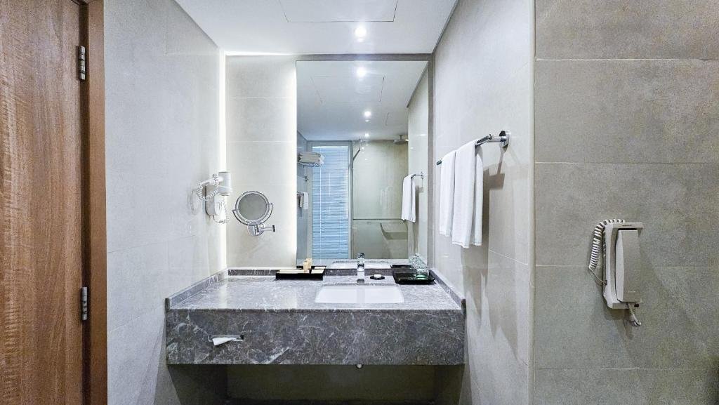 Comfortable Accommodations: Wyndham Garden Ajman Corniche in Ajman offers family rooms with sea or pool views, air-conditioning, balconies, and private bathrooms. Each room includes a work desk, free WiFi, and modern amenities. Exceptional Facilities: Guests enjoy a private beach area, spa facilities, sauna, fitness centre, sun terrace, and a year-round outdoor swimming pool. Additional amenities include a hot tub, steam room, and wellness packages. Dining Experience: The family-friendly restaurant serves seafood and international cuisine in a traditional and modern ambience. Breakfast options include continental, American, buffet, halal, and Asian. Prime Location: Located 18 km from Sharjah International Airport, the hotel is a 4-minute walk from Ajman Beach. Nearby attractions include Ajman China Mall and Sharjah Aquarium, each 13 km away.